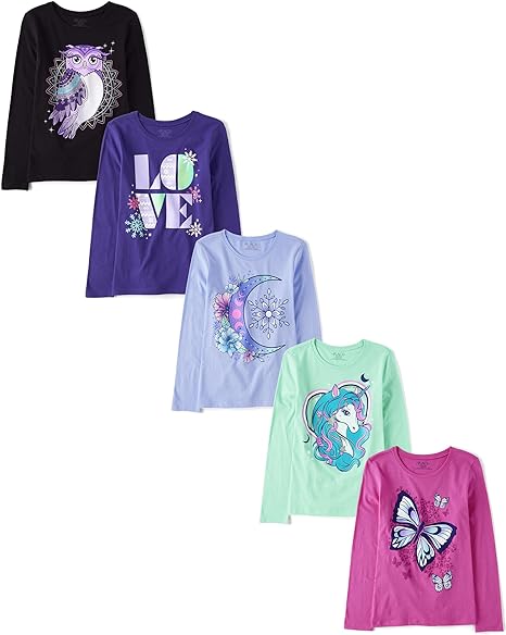 The Children's Place Girls' 5-Pack Long Sleeve Graphic T-Shirt