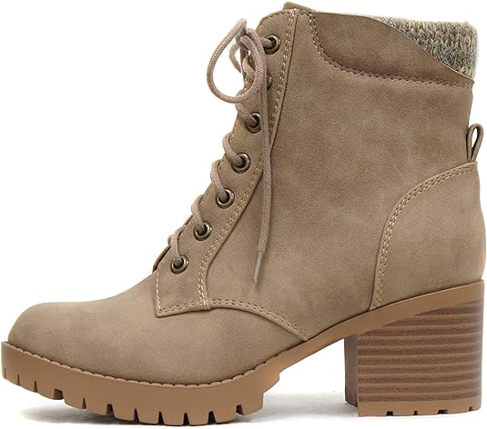 Soda Single Lug Sole Chunky Heel Combat Ankle Boot Lace up w/Side Zipper